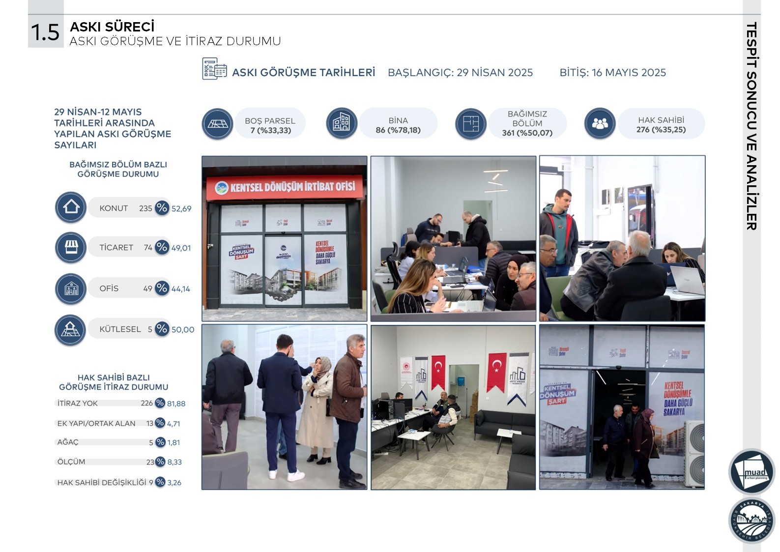 Kentsel dönüşüm süreçlerinde adil ve şeffaf bir yaklaşım, doğru tespit ve değerleme ile başlar. MUAD olarak, projeye konu alanlarda her parsel ve bağımsız bölümün hak sahipliği, kullanıcı durumu ve fiziksel özelliklerini eksiksiz ve sistematik bir şekilde kayıt altına alıyoruz. Bu süreç, sadece veriyi toplamak değil; her hak sahibinin eşit biçimde temsil edilmesini ve adil muamele görmesini sağlamak için kritik bir adımdır.